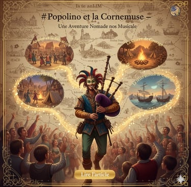 Chez la Cie OLIM, quand Filippo joue Popolino avec sa cornemuse, il n'est pas simplement un musicien amusant. Il est le continuateur d'une tradition vieille de plus de 2000 ans. Il est un baladino moderne, un musicien itinérant qui parcourt l'Europe comme l'ont fait ses ancêtres, portant la musique à qui veut l'entendre.